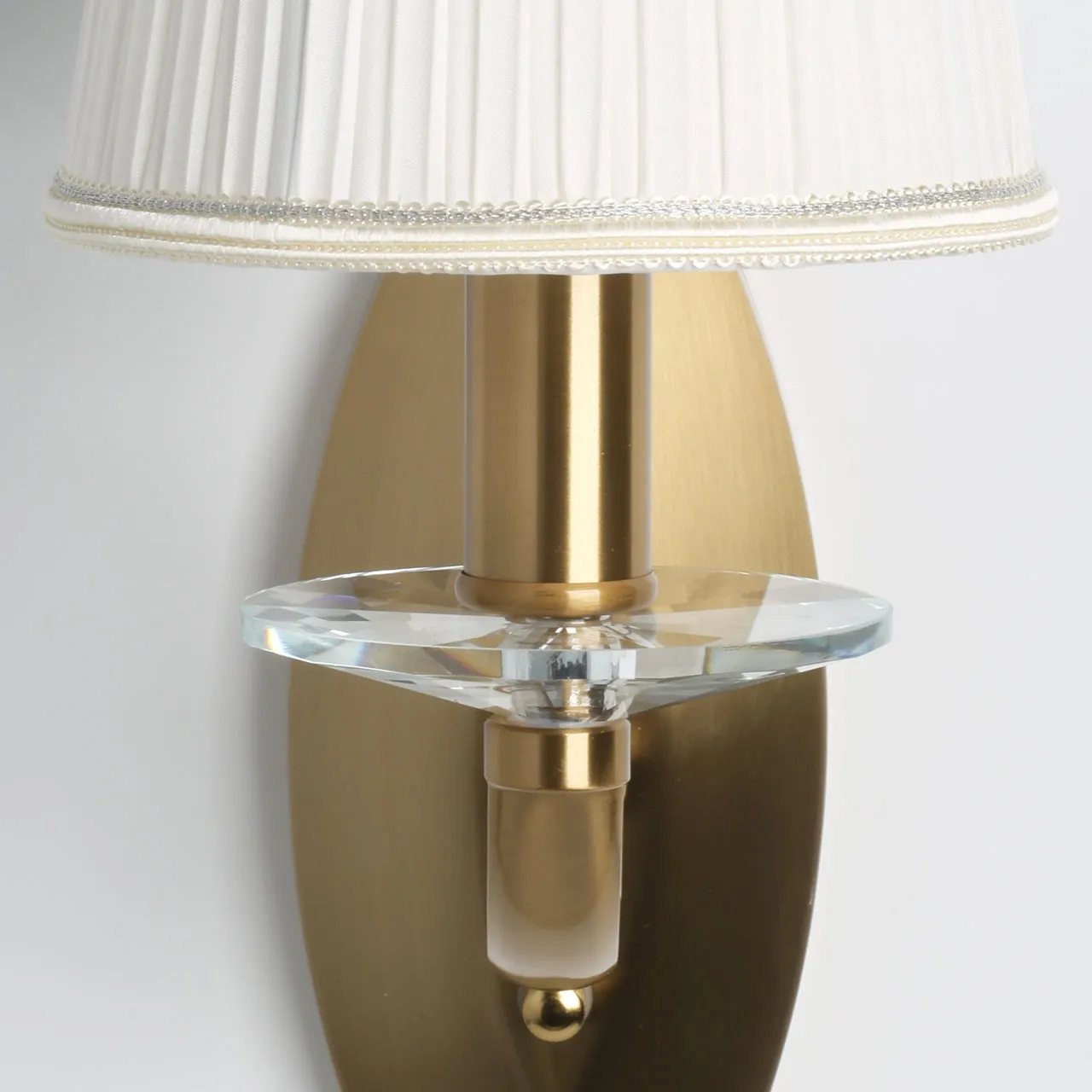 Основание/ металл/ латунь Абажуры/ текстиль/ белый Декор/ хрусталь/ прозрачный