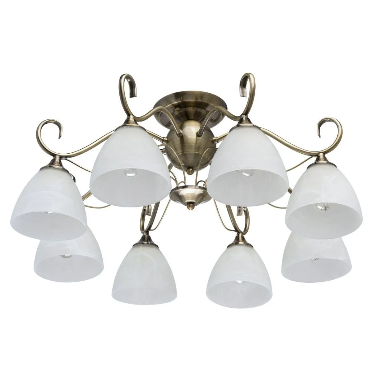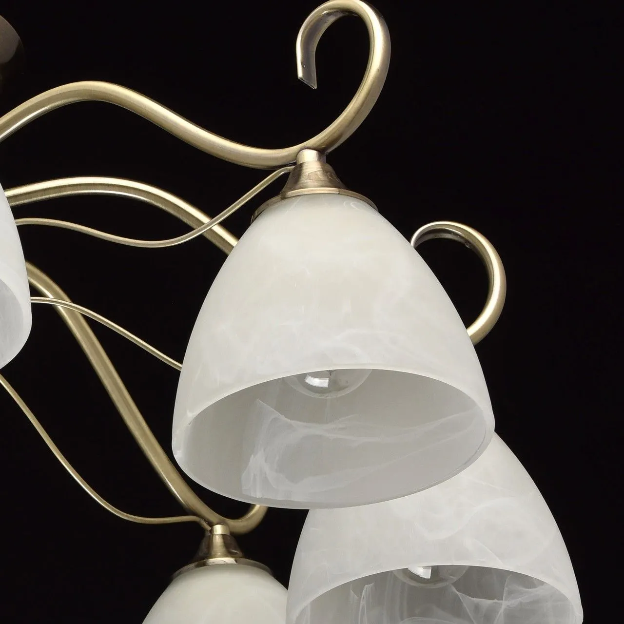 Металлическое основание цвета античной бронзы. Плафоны - алебастровое стекло.