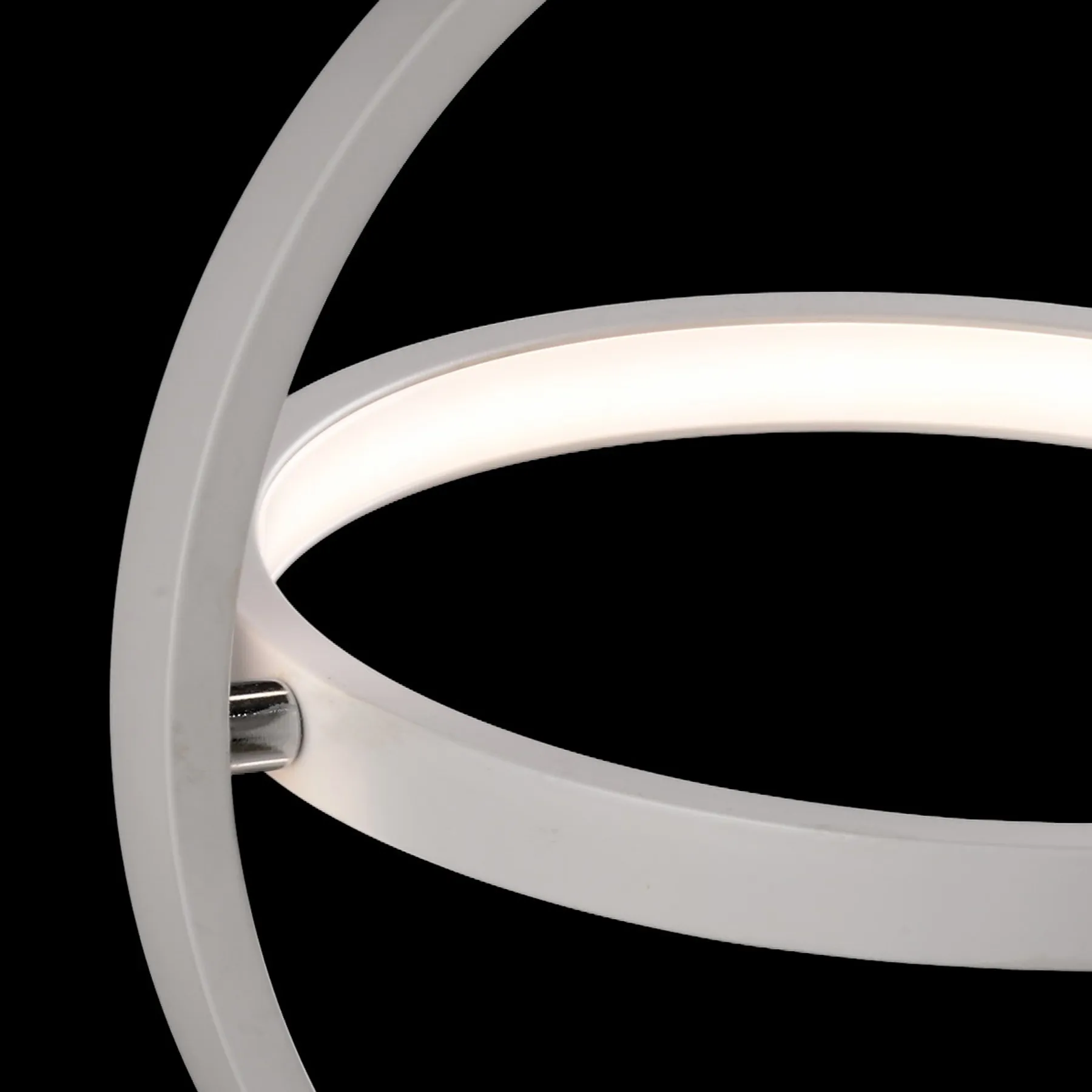Встроенные светодиоды размещены в акриловом диффузоре внутри каждого кольца, образуя световые обручи и придавая образ космичности и инновации. Регулируемые подвесные светильники доступны в трех размерах. коллекция также предлагает фиксированный потолочный светильник и настольную лампу.