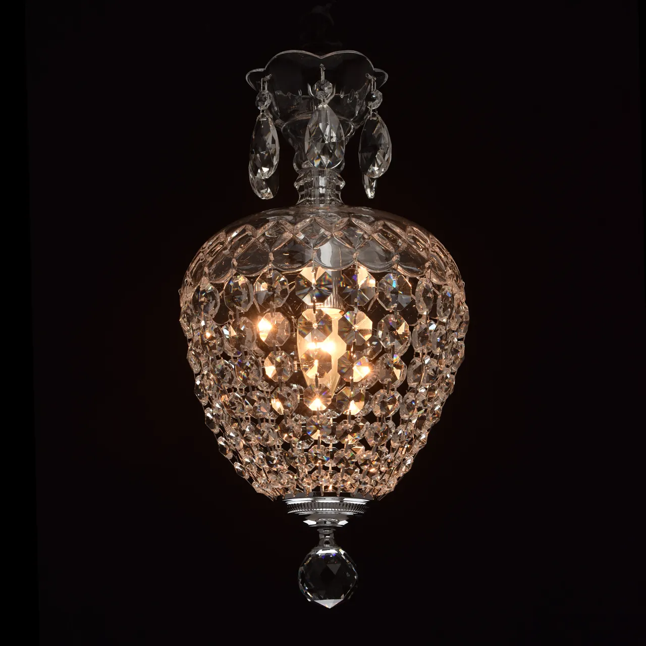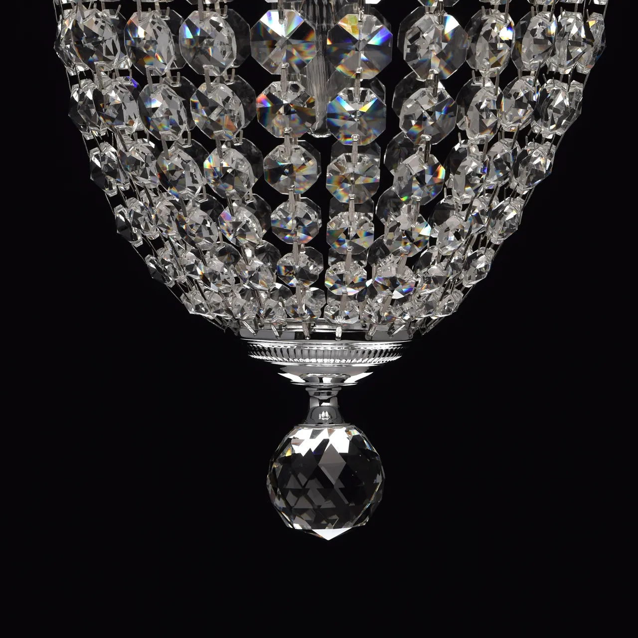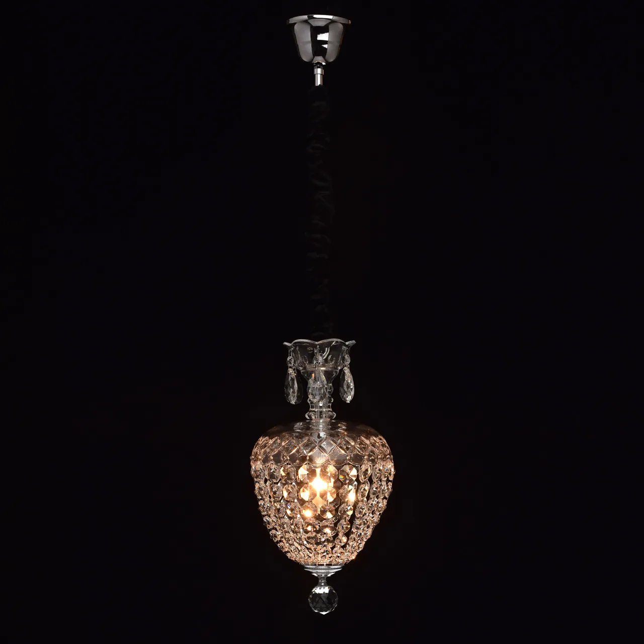 Металлическое основание цвета хрома.Подвески из хрусталя