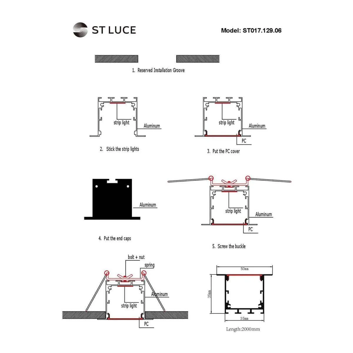 Профиль встраиваемый с рассеивателем ST-Luce ST017.129.06